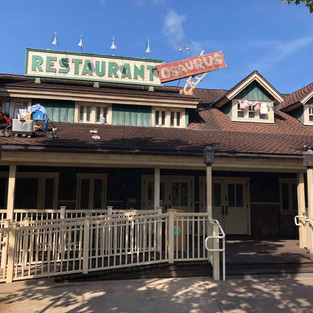 Don’t forget to visit Restaurntosaurus. It is a fun hamburger, and chicken strips counter service restaurant. It is beyond imagineered and so charming. Every room is like an added on building to a once home. Dinosaur bones and artifacts fill the walls and ceilings. Even the lighting goes above and beyond. It is the traditional food you expect at a theme park, but it is also an easy fix to picky palettes. The bonus is you can find a place to sit and complete a Mobile Order on your phone.